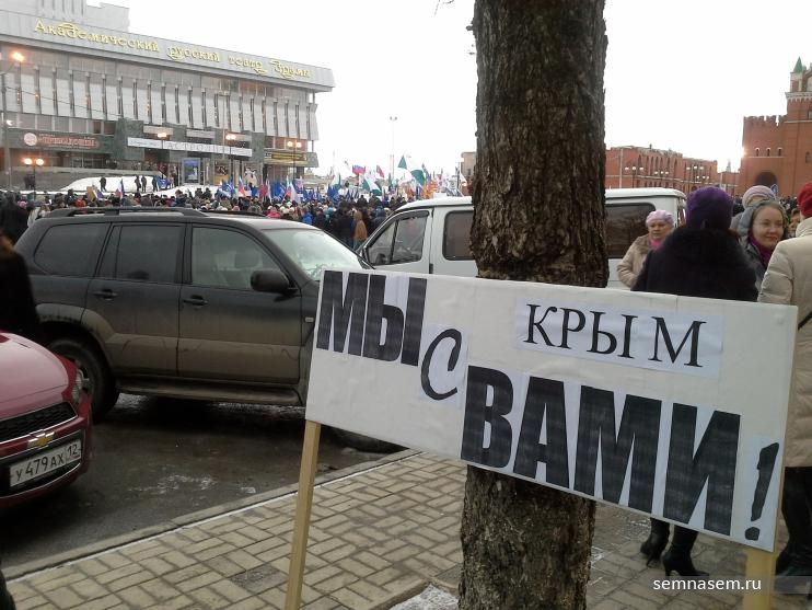 Тема Крыма и событий в Восточной Украине — свежа и злободневна. В Марий Эл нет политических партий, выступавших бы с иных позиций, нежели именуемые охранительно-патриотическими. Возможно, политики решили не теряться и ковать железо, пока горячо, раз уж такой расклад случился в стране, а опросы показывают грандиозное одобрение жителями страны действий властей.