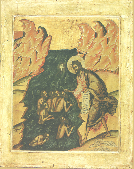 На второй иконе изображен Иоанн Предтеча, который крестит иудеев в Иордане. Это икона «праздника», которая называется «Собор Иоанна Предтечи». Шалина не знала, как называется икона, и назвала ее «Крещение народа иудейского».
