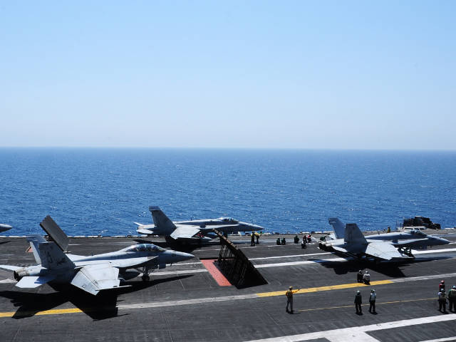 Примерно в 11:20 (19:20 по Москве) четыре истребителя-бомбардировщика F/A-18 успешно атаковали стоявший конвой ИГ из семи машин и минометную точку около Эрбиля (столицу Иракского Курдистана).