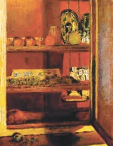 В интервале между 1927 и 1947 годами Боннар написал около 60 холстов с изображением столовой в его доме с балконным окном, выходящим в сад. Довольно быстро становится понятным, что художника волновало именно соположение оттенков южного неба, цвета скатерти на столе и цвета стен. Условно изображена посуда и фрукты на столе; условно написана и женская фигурка в углу у стены; зато безусловны цвета плоскостей — мир преображен ради чего-то главного для художника.