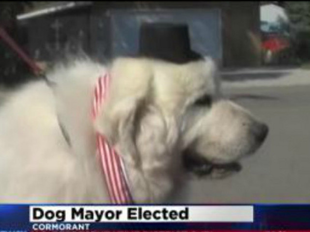 Фермерский пес по кличке Дюк избран мэром поселка Корморант (американский штат Миннесота). На состоявшихся там выборах он "с подавляющим преимуществом в голосах" победил владельца местного магазинчика Ричарда Шербрука, сообщает телеканал CBS.