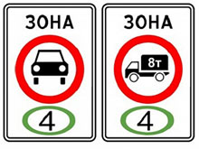 Если изображен грузовик, а ниже в зеленом кружке написана цифра "3", то в эту зону запрещено въезжать именно грузовикам, экологический класс которых ниже Евро 3. Если нарисована легковушка с той же цифрой, то запрещено въезжать всем машинам ниже этого класса.