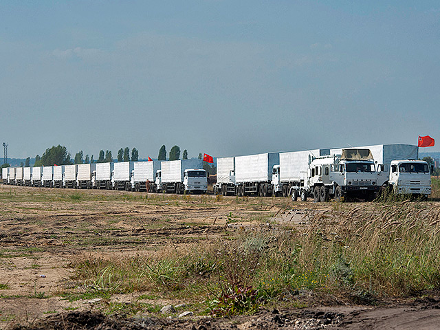 Глава МИДа РФ Сергей Лавров заявил, что схема по гуманитарной помощи, разработанная РФ, Украиной, ООН, ОБСЕ И МККК, окончательно согласована, в ней учтены все пожелания Киева, включая маршрут. Первоначально сообщалось, что конвой в среду пересечет российско-украинскую границу в районе пропускного пункта "Плетеневка" в Харьковской области. Однако за несколько часов до того, как конвой приблизился к границе, премьер-министр Украины Арсений Яценюк заявил, что Украина не примет помощь из России.