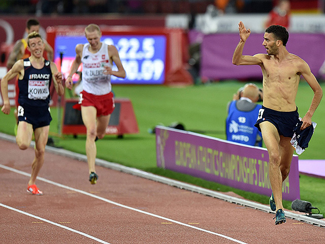 Вице-чемпион олимпийских игр Махидин Мехисси-Бенаббад из Франции, завершавший на чемпионате Европы в Цюрихе дистанцию 3000 метров, на финишной прямой оторвался от соперников и в порыве радости снял майку, потом зажал ее зубами и поприветствовал болельщиков, махая им рукой.