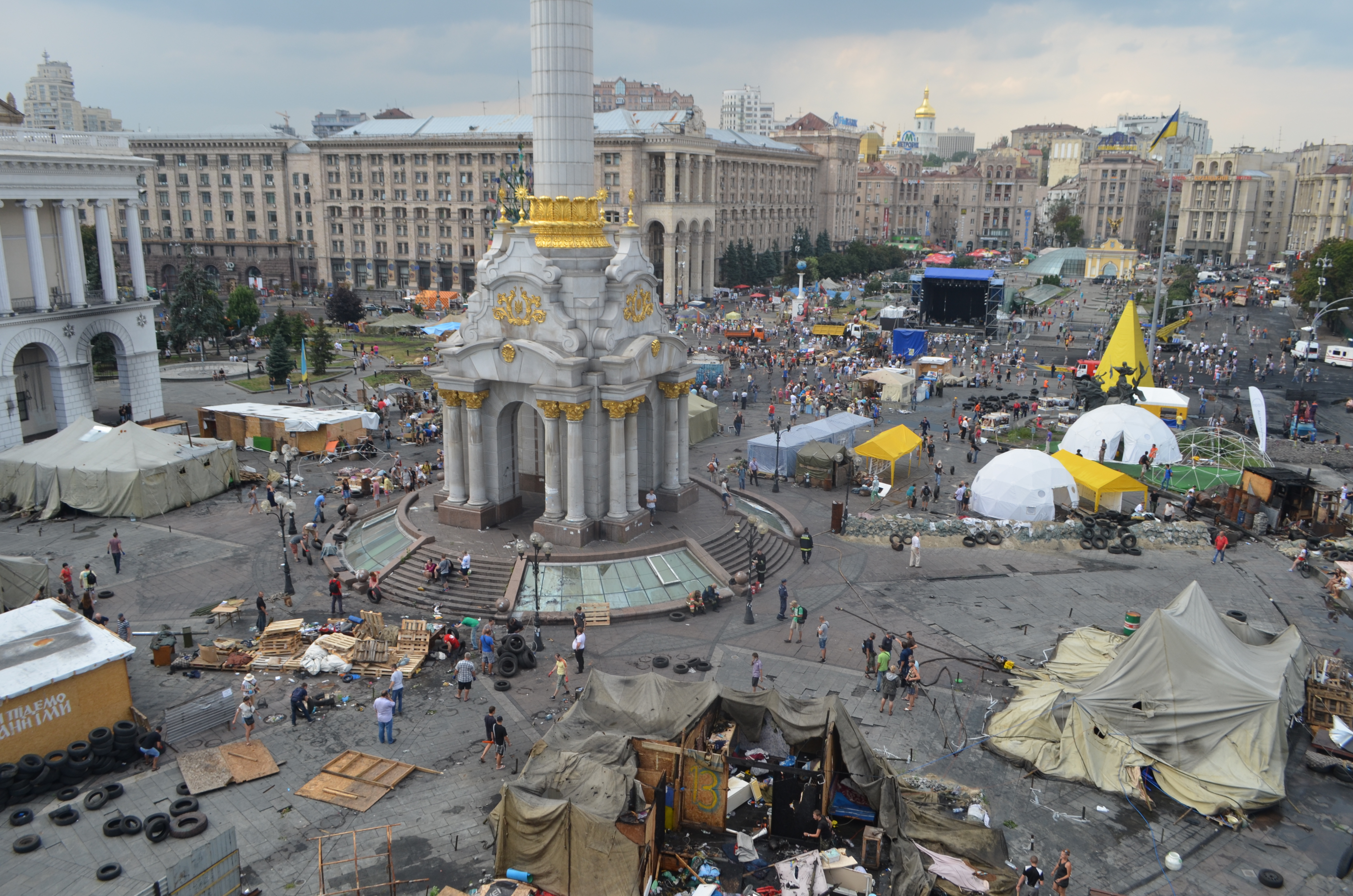 Впервые собравшиеся на площади Независимости (Майдане) выступали не со сцены, которую разобрали в пятницу.