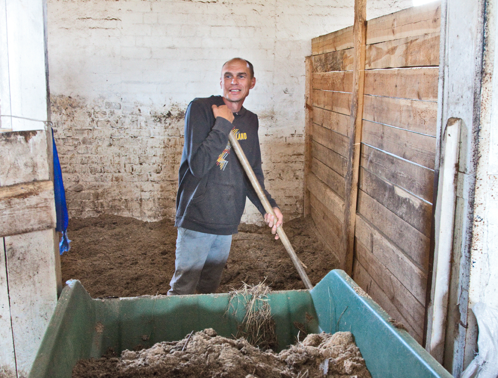 Всего на ферме под Петушками работает 160 человек, из них половина — гастарбайтеры из Средней Азии. Средняя зарплата в райцентре — 12 тыс. рублей, на ферме у Кописки — в два раза больше. Только толку что? «Молодые не хотят работать с навозом, проще полжизни тратить на дорогу в электричке — вот почему у нас три миллиона водителей и сколько же охранников», — комментирует особенности российской жизни Нина, супруга Джона, одетая в сарафан, поверх которого видавший виды фартук.