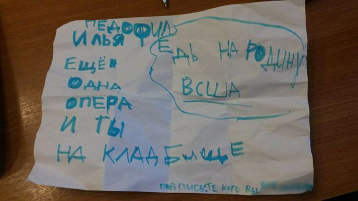 Ведущая телеканала «Дождь», в свою очередь, во время прямого эфира с композитором сообщила, что редакция также получила письмо, в котором заявители называют себя правыми активистами. По факту нападения уже ведутся работы, за них отвечает второе отделение полиции. «Полицию больше заинтересовал не факт нападения, а факт того, что я разбил витрину. Их больше волнует, кто будет возмещать», — рассказал Демуцкий в интервью «Дождю». Опера «Новый Иерусалим», о которой идет речь, — постановка о ловцах педофилов, созданная Ильей Демуцким и автором либретто Артемом Сусловым, приобретшим скандальную известность в Петербурге в качестве промоутера спектакля «Лолита» с Леонидом Мозговым в главной роли. Показ спектакля несколько раз отменялся из-за писем «казаков», которые посылали площадкам. Премьера оперы была назначена еще на апрель этого года. Ее планировалось провести в петербургской студии документальных фильмов «Лендок». Из пресс-релиза Артема Суслова от 31 марта 2014 года