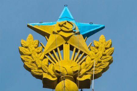 Рано утром в среду неизвестные вывесили украинский флаг на шпиле высотного здания на Котельнической набережной, сообщает Интерфакс. Кроме того, они покрасили половину венчающей шпиль высотки звезды в голубой цвет.