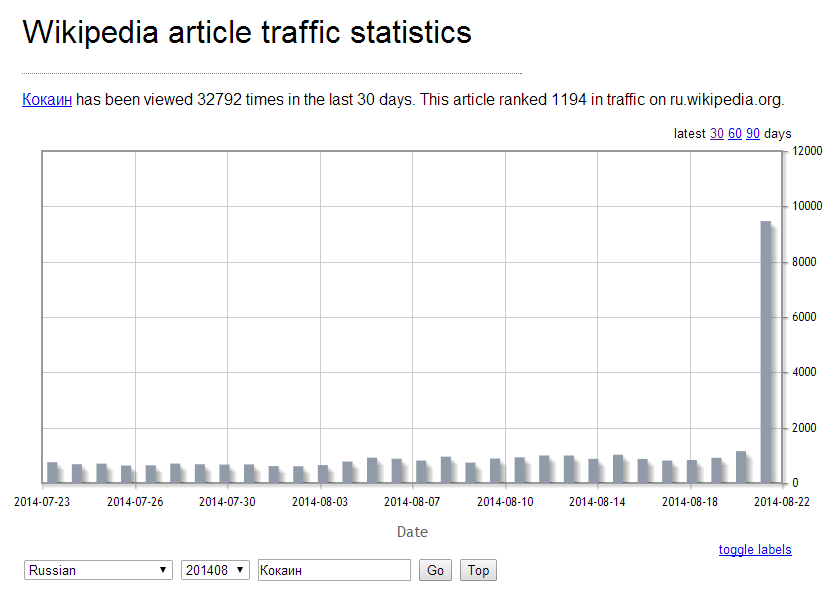 Статья Википедии «Кокаин» стала популярнее в 10 раз после запрета