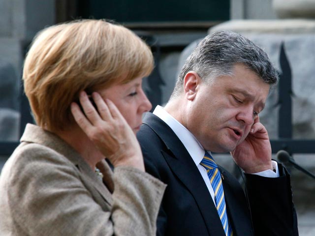 Меркель также выразила осторожный оптимизм: "Мы поддерживаем мирные переговоры, которые пройдут в Минске, и надеемся, что на них произойдет прогресс хотя бы на шаг вперед. Мы обсуждали эту тему с президентом (Порошенко). Я считаю, что это возможность продвижения". (Цитата по "Интерфаксу".)