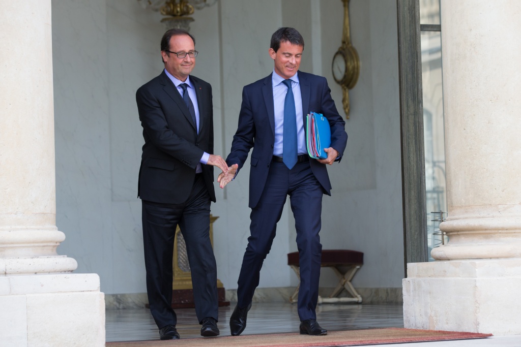 Франсуа Олланд (слева) и Мануэль Вальс в Елисейском дворце 20 августа 2014 года/ Фото: REUTERS/Philippe Wojazer