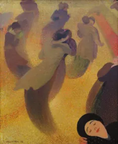 Что поразительно у Валлоттона — это его владение совсем разными стилями. При этом, что бы художник ни выбрал в качестве натуры, он относится к своему материалу с любовью. Сатиру у Валлоттона мы тоже найдем в жанре, для этого предназначенном, — в рисунках для газет и журналов. Но вообще-то он лирик… Друзья Валлоттона не-когда отмечали, что этот сдержанный и даже суховатый швейцарец был на самом деле не только нежным, но и страстным. Посмотрите на «Вальс», это работа 1893 года… В 1899 году Валлоттон женился на Габриель Родригес-Энрикес (1863–1932), вдове с тремя детьми, сестре известных галеристов братьев Бернхаймов; он оставил нам несколько ее портретов. Валлоттон много выставлялся в разных странах, в том числе в России. В 1913 году он даже посетил Петербург, где у него был заказ на портрет, и Москву, которая его поразила; впрочем, в его творчестве эта поездка, видимо, никак не отражена.