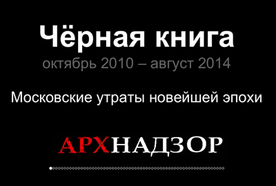 На сайте общественного движения «Архнадзор» опубликована «Черная книга» утрат старой Москвы за последние четыре года. В книге 60 страниц.