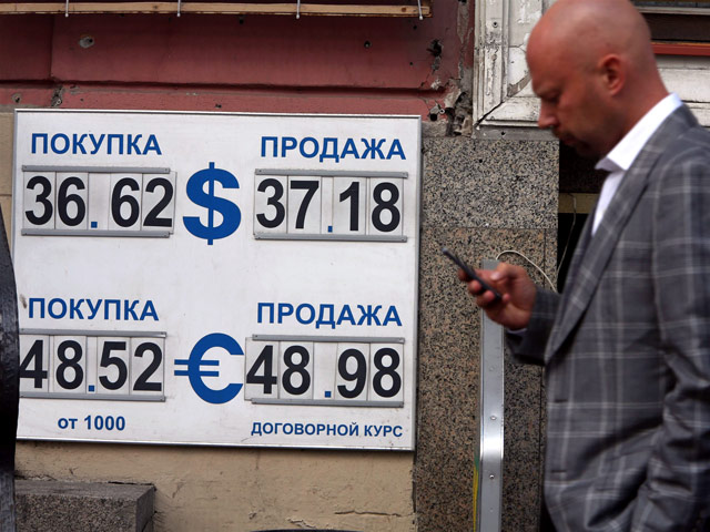 Так, курс доллара к рублю на Московской бирже по состоянию на 12:40 по московскому времени в среду снизился на 61 копейку по сравнению с уровнем закрытия предыдущего дня и составил 36,85 рубля. Евро подешевел к рублю на 63 копейки до 48,45 рубля. При этом стоимость бивалютной корзины, состоящей из 0,45 евро и 0,55 доллара, уменьшилась на 62 копейки и достигла отметки 42,10 рубля.
