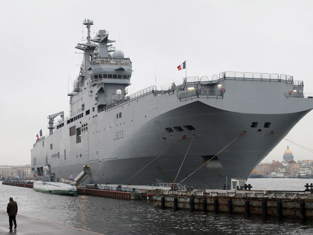Контракт на сумму 1,12 млрд евро на строительство Францией вертолетоносцев для ВМФ России был подписан в июне 2011 года. Сейчас на верфях французского города Сен-Назер завершается строительство ДВКД "Владивосток". Он должен быть передан России 1 ноября. Второй корабль этого типа, ДВКД "Севастополь", был заложен в 2013 году.
