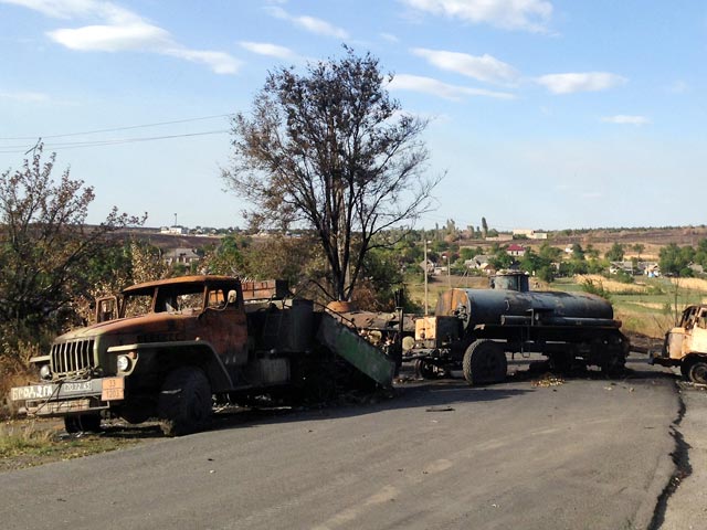 Колонна военной техники, принадлежавшей украинской армии, уничтожена в поселке Розовка Запорожской области Украины, сообщает в понедельник агентство "Новороссия". Как говорится в сообщении, на подъезде к Розовке колонну грузовиков атаковали так называемые запорожские партизаны.