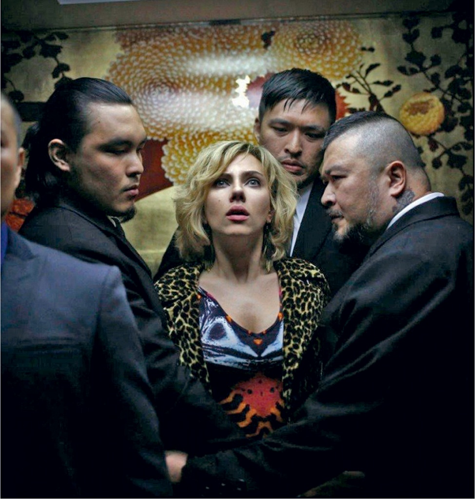 Параллельно развиваются два сюжета (есть и вставочка на уровне запретного, незаметного глазу, но психологически воздействующего на зрителя 25-го кадра). 1) История американки, которую играет Скарлетт Йоханссон, редкая голливудская звезда, которая большую часть карьеры тратит не на блокбастеры, а на продвинутые киноманские фильмы. Героиня Йоханссон, оттягиваясь на Тайване, угодила в дурную историю с корейской мафией, обязавшей ее провезти в Европу в собственном животе новый супернаркотик. 2) История профессора (оскароносец Морган Фримен), читающего лекции о том, что человек использует всего десять процентов возможностей собственного мозга, тогда как дельфины двадцать. 3) Хохмаческие вставные иллюстрации в духе «Амели»: когда к героине приближаются корейские мафиози, идут кадры, как ягуар преследует и ловит косулю. Но есть и история № 4: картины развития Вселенной и нашего мира, но не как в «Древе жизни», в обратном порядке: от сегодня до Большого взрыва.