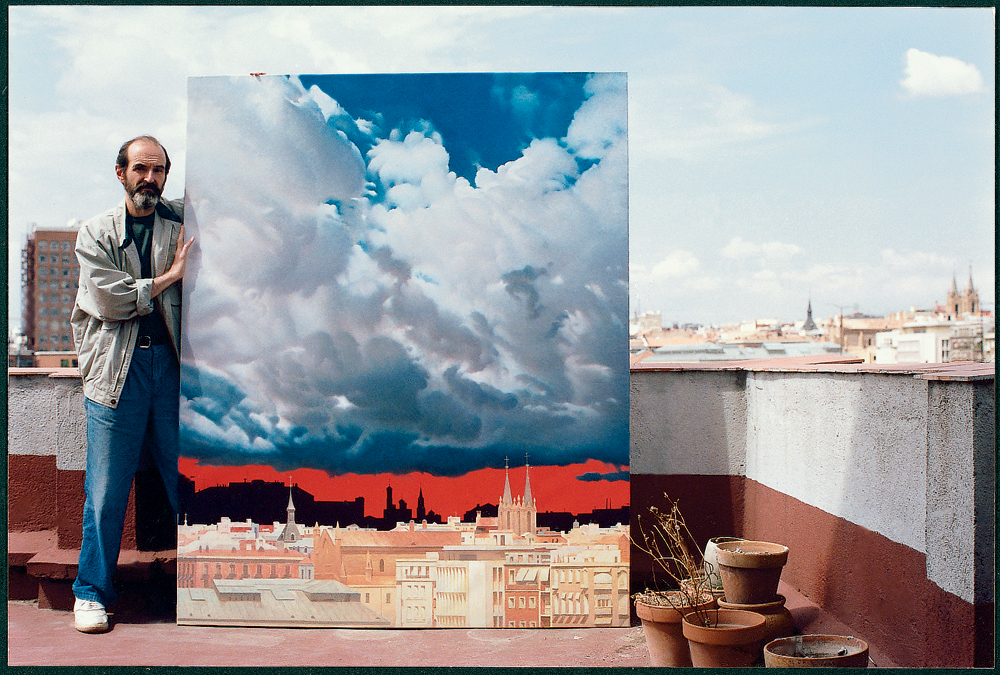 Эрик Булатов с картиной «Вид Москвы из Мадрида» /фото: МВО «Манеж»