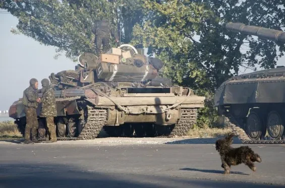 Стрельба возобновляется в 6 утра. Через блокпост в город въезжают три украинских танка — это первые танки, которые мы видим за два дня.