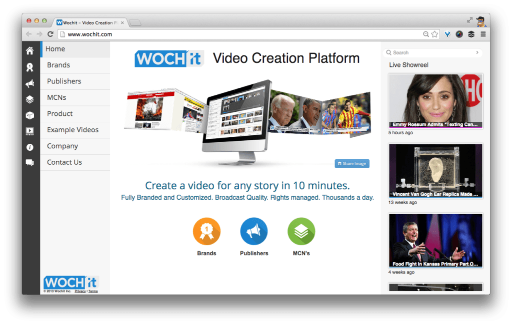 Wochit – это облачная платформа для создания видео из информации различных источников, включая новостные сайты, rss и социальные сети.
