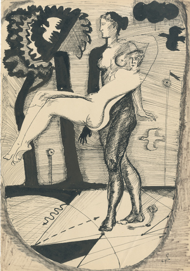 Можно считать это искусством от ума, можно, напротив, дивиться, как порой рука, кажется, еле поспевает за роем образов, а порой — наоборот, как в разреженном воздухе, изображает что-то, чтобы тут же вывести на уровень обобщения, вообще-явления. Рассуждая о 1960-х, Илья Кабаков «принципом художественности для Соболева» назвал (оговариваясь — «если так можно было бы это назвать») «художественное мышление. Неважно, какой результат возникал при этом: улавливание художественного импульса было важнее, чем самый продукт». И когда в соболевских рисунках на некоторые места накатывает пустота, это ведь и свобода интерпретатора, который каждый раз при разговоре с произведением искусства заступает «на вахту» в центр чьей-то художественной вселенной. Чьего-то «диалога с самим собой», вынесенного «за пределы своего “Я”».