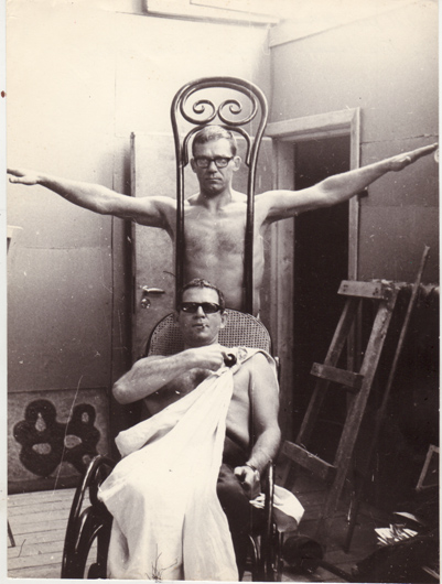 Возможность выхода «за пределы своего “Я”», кажется, больше всего не давала ему покоя. Ну то есть необходимость найти какое-то решение, когда все уже вроде бы решено и придумано. Как и поиск друзей, чтобы этот выход искать. Соболеву все время нужна была среда, свой круг. Он мог организовать такую среду даже почти виртуально: когда они с другом Юло Соостером, с которым делили мастерскую, устроили, по воспоминаниям Юрия Герчука, эдакую школу — задумали восполнить пробелы в самообразовании по современному искусству на практике, то есть то кубистами, то дадаистами делались. И «искусство, несущее характер концептуальности или некую развернутую поэтическую метафору, и для него, и для меня оказалось чрезвычайно важным» — приводит соболевские слова Юрий Герчук. Практика практикой, но главное — опять диалог с художниками, получение опыта из рук в руки, пусть в воображаемой беседе. С Соостером, кстати, они делали и перформансы, и там, наверное, осталась зацепка на будущее, когда в 1990-м с режиссером Михаилом Хусидом (с которым прежде они десять лет ставили на Урале кукольные спектакли) Соболев открыл Международную мастерскую синтеза и анимации «Интерстудио». И когда входившая в «Интерстудио» «Школа Соболева» — курс «художников видеофильма», который он собрал в филиале Санкт-Петербургской академии театрального искусства, — решила стать «автономной единицей», группой Соболева и его друзей («студентами», как вспоминает Ирина Базилева, ему неловко было их называть) «Запасной выход».