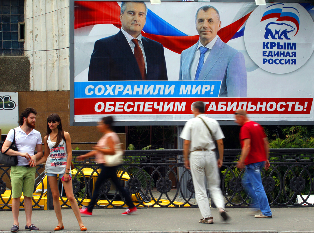 Впрочем, предвыборная кампания в Крыму имела и отличительные особенности. Обычная история для российской глубинки — политические партии дружно ругают главного местного боярина (или его опричнину в местном заксобрании) и обещают донести до царских палат всю правду о кривде. В Крыму эта матрица сломана. Первые номера списка «Единой России» — и.о. главы Республики Сергей Аксенов и спикер Госсовета Владимир Константинов — главные фигуранты «крымской весны». Они же — единственные аффилированные с Кремлем крымские политики. Критиковать их — значит, критиковать новое гражданство полуострова. На это не решился никто. Более того, доходило до абсурда, когда лидер местной ячейки ЛДПР Сергей Шувайников в интервью радио «Свобода» рассказывал о том, что он по природе оппозиционер: «Как и Владимир Вольфович — я всегда говорил остро, резко», а буквально абзацем ниже признался, что Жириновский взял его на пост главы ячейки благодаря рекомендации Аксенова и Константинова.