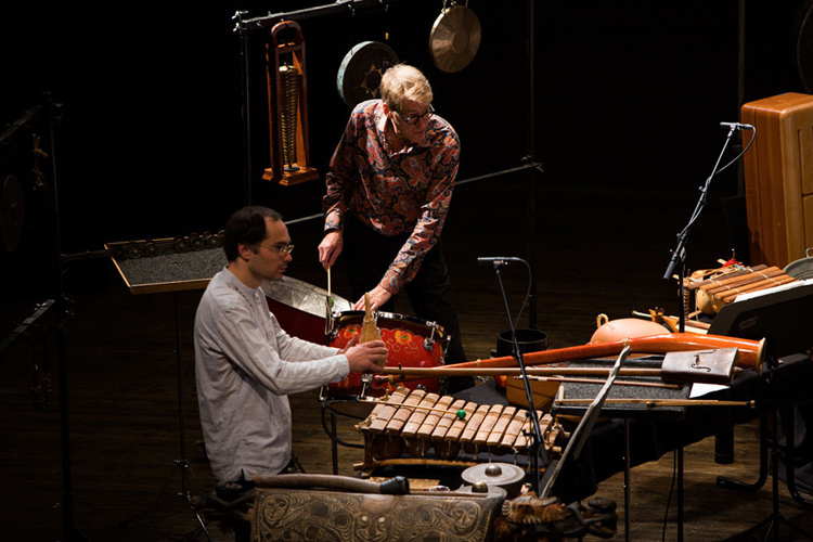 © Ultimafestivalen / Henrik Beck «Exotica» для шести исполнителей европейской выучки, в распоряжении которых — россыпи неевропейских инструментов и две нотные строчки, одна с ритмом, другая с напеванием-бормотанием, — кунштюк Маурисио Кагеля, сочиненный им по заказу мюнхенской Олимпиады 1972 года. Ничего величественного в нем нет, гораздо больше провокационного, но на самом деле это примерно про то же, про что и у Берио, — про глобальную деревню. Уж не знаю, как это сочинение было воспринято на Олимпиаде, но на «Ультиме» концерт закончился братанием публики с героическими музыкантами из Ensemble Modern, вокруг экзотических дудок и барабанов которых она еще долго толпилась.