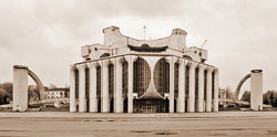 Искусство архитектуры в стране, на три четверти застроенной в духе постановления «Об устранении архитектурных излишеств в проектировании и строительстве» [1], - это феномен по определению. Засилье панельного домостроения отчасти упрощает задачу составителей выставки: отыскать архитектурные шедевры не так уж сложно. И, кажется, организаторы максимально облегчили себе путь, забрав в экспозицию всё без разбора, что выхватил фотоаппарат в монотонном фоне социалистических улицах [2].