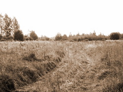 Сразу за постройками «дорога» становится совсем зелёной, а потом и вовсе теряется в поле. Проезженная и скошенная колея кончается через 270 метров, около дома Капитонова. Дальше никто не ездит. Других домов и обработанных полей там попросту нет.