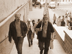 Зюзьга – это черпак-сачок. В ней остаётся только то, что нужно заготовителям рыбы. «Митьки» поступают таким же образом: извлекают из старых плакатов по технике безопасности и агитационных плакатов отдельных персонажей и надписи и слегка их переделывают, по вкусу добавляя туда что-нибудь из других эпох. Некоторые плакаты придумываются «с нуля», следуя плакатной логике советского прошлого. Прямолинейная наивность открывает новые горизонты и восстанавливает старые. После чего некоторые плакаты бьют наотмашь в лоб, как рукоять зюзьги.