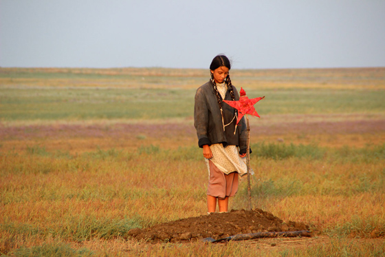 © Наше Кино И к моменту финального события, которое смотрится совсем уж пародийно, даже издевательски, становится понятно, зачем Котту эти изматывающие красоты казахстанской степи, почему он выбирает этот снотворно-медитативный ритм повествования, для чего он так усиливает градус поэзии к концу — до слащавости, почти до пошлости. Все предыдущее повествование напоминает огромный самолет без крыльев, который не может взлететь, но ему и не нужно. Он должен не летать, а таранить, сметать все на своем пути, поскольку «Испытание» — это не продолжение традиции, а констатация невозможности ее продолжения. Советское поэтическое кино умерло, так же как и страна, его породившая. Показывая гибель упорядоченного советского мира с его портретами школьных классиков, мечтами о Кремле, летчиками (едва ли не важнейший советский символ победы человека над стихией) и итальянскими ариями в казахстанской пустыне, Котт вдруг проговаривается о чем-то очень важном — о смерти модернизма.