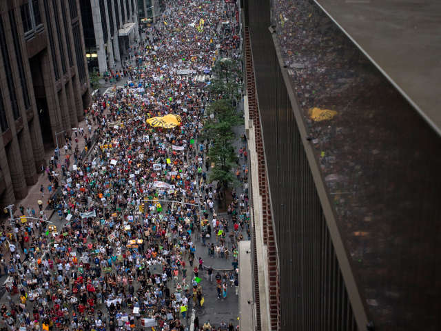 Ожидается, что в Нью-Йорке на улицы выйдут до 100 тысяч протестующих. Все утро в Нью-Йорк съезжались автобусы, доставлявшие людей со всей страны, а также из соседней Канады. Массовости акции способствует стоящая в Нью-Йорке хорошая погода: столбики термометров показывают 24 градуса, передает ИТАР-ТАСС.