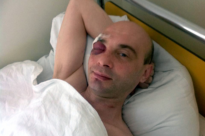 Активист Виктор Горбунов сейчас находится в нейрохирургическом отделении больницы «скорой помощи». У него сотрясение мозга, на разбитую голову наложен шов, хотя активист чувствует себя нормально.