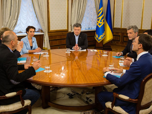 Президент Украины отметил непростое положение дел в Донецке и Луганске и подчеркнул возможность урегулирования конфликта при использовании только военных средств. «Никто не имеет никаких иллюзий - нам не удастся завести в эти города несколько батальонов военных и уладить ситуацию <…> Нам просто не дадут этого сделать», - заявил Порошенко. «Чем больше там будет украинской армии - тем больше там будет российских военных. Выиграть мы можем только миром», - подчеркнул он. Порошенко также заявил, что между президентом, парламентом и правительством нет разногласий в отношении того, что мирное развитие событий на Донбассе является приоритетным. Порошенко назвал это «абсолютно твердым убеждением и скоординированными действиями».