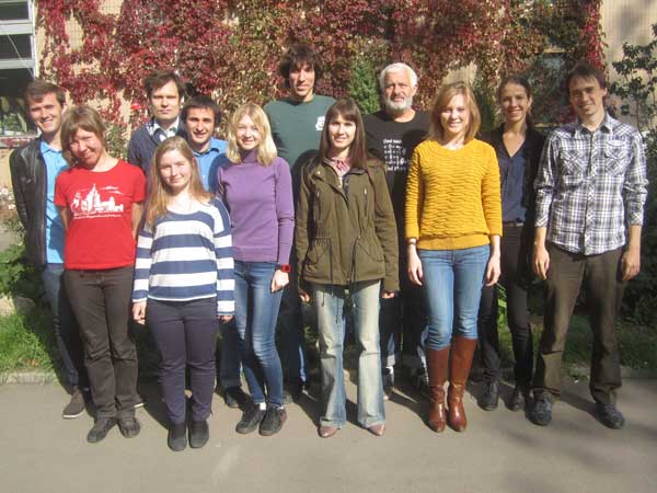 На фото: Алексей Кондрашов с подмножеством сотрудников лаборатории Эволюционной геномики ФББ МГУ. Задний ряд (слева направо): Ренат Арифулов, Сергей Науменко, Владимир Сеплярский, Георгий Базыкин, Алексей Кондрашов, Мария Баранова. Передний ряд (слева направо): Галина Клинк, Ольга Вахрушева, Надежда Тереханова, Мария Логачева, Ксения Лежнина, Евгений Леушкин. Поздравляем Евгения с успешной защитой канд. диссертации!