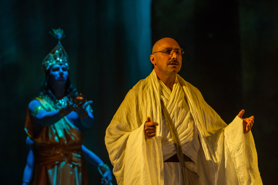 © Екатеринбургский государственный академический театр оперы и балета Да-да, мало того что именно Екатеринбург (а не Москва или Питер) стал местом первой постановки оперы Гласса в России, но это еще единственная опера в мире, требующая коуча по санскриту (и такой в екатеринбургской постановочной команде есть)! Ну ладно, санскрит санскритом, вряд ли кто к произношению будет придираться, но как должны звучать герметичные бесконечности Гласса, в наши дни нетрудно узнать в Ютьюбе. И как их будет петь русский тенор, вчера певший Германа? Уж не говоря о том, что ему для исполнения главной роли — а это Махатма Ганди — придется побриться наголо (перед премьерой это героически сделал Владимир Чеберяк) и в дальнейшем петь Германа в парике. Театр-то русский, репертуарный, «Сатьяграху» собираются исправно давать вперемежку с более привычными названиями.