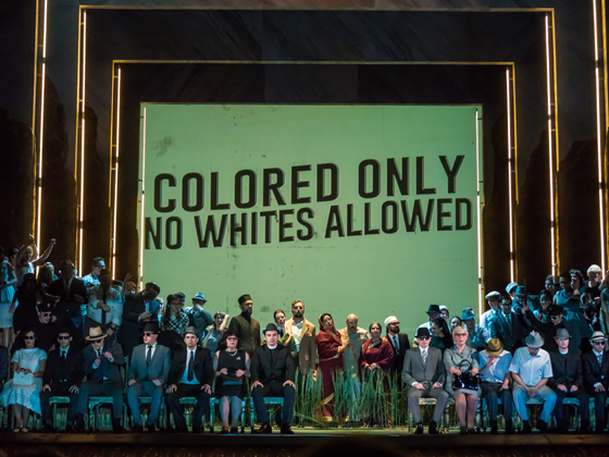 Для молодого американского режиссера Тадеуша Штрассбергера (он же сценограф) «Сатьяграха» стала первой работой в России. Впереди, впрочем, приглашение поставить «Орестею» Танеева в Мариинке (он ее уже ставил в американском Бард-колледже). Его постановка — никакой не эстетический шок, а попытка достучаться. Максимально дружелюбная. Он отправляет артистов с ритуальными шествиями в зал. Он придумывает на сцене свои человеческие истории, простые и доходчивые. Вот колонизаторы сгоняют индийцев насильно регистрироваться, берут отпечатки пальцев, а те рвут полученные бумажки. Вот белая женщина закрывает Ганди своим зонтиком от солнца и спасает его от издевательств толпы. Самый волнующий момент — просто видео с речью Мартина Лютера Кинга, сказанной 28 августа 1963 года, где озвучена мечта о равенстве белых и черных. Заканчивается спектакль стоячей овацией.