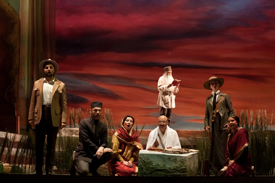 Однако проблемы с Глассом — не только музыкальные, но и содержательные. Эта опера — не отдых и не мелодрама, как у нас привычно, а серьезный разговор на, как выясняется, все еще острые политические темы. Премьера ее состоялась в 1980 году в Роттердаме. Это вторая часть оперной трилогии Гласса про людей, которые, как он считает, силой своего духа изменили мир. Помимо Ганди двое других — ученый Альберт Эйнштейн и древнеегипетский фараон, религиозный реформатор Эхнатон. Сюжета в привычном понимании в опере нет, есть жизнь идей, сходство которых прослеживается в учениях Льва Толстого, Рабиндраната Тагора и Мартина Лютера Кинга — именно этими именами называются три части оперы.