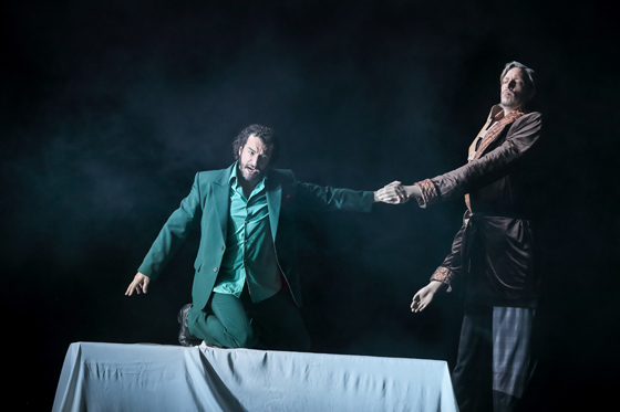 © Пермский театр оперы и балета Дон Жуан единственный не обмотан всевозможными ортопедическими корсетами и бандажами, не сливается с манекенами, выделяется ярким пятном на общем фоне (художник по костюмам — Мета Бронски). Все, кто с ним соприкасается, получают эту прививку свободы — хотя бы ненадолго, хотя бы на время устроенного им ошеломительного, яркого, раскрепощающего, даже пусть хулиганского праздника, которым заканчивается первое действие.