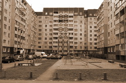 В Пскове стандартная, вульгарно раскрашенная, бездумно завышенная застройка растет в самых неожиданных местах, и не было гарантий, что этот заброшенный участок уже не присмотрен для застройки. И точно: в ходе разработки проекта зон охраны понемногу выяснилось, что участок, на котором находятся спортивные сооружения и площадки, уже не только является частной собственностью, но и существуют планы его застройки жилым кварталом. А спорткомплекс собственнику не нужен, и восстанавливать его собственник не намерен. И известно об этом не только псковским архитекторам, но и комитету по охране объектов культурного наследия, от принципиальной позиции которого во многом зависит судьба этой территории.