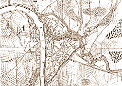 На плане Пскова 1791 года показаны два селения – Степановская слобода на берегу реки, между Иоанновским и Стефановским монастырями, и деревня Глинищи, к северо-западу от тогда еще небольшого Мироносицкого кладбища. Через деревню проходит старая дорога, соединявшая центральную переправу – Пароменье – с окрестными селениями. Отмечен на карте и овраг с речкой, отделивший деревню Подвишенье от низинного берега. Вся же остальная территория еще в конце XVIII века использовалась под пашни. Это открытое пространство сохранялось и в середине XIX века – мы видим пашни за линией городской границы, включившей только Мироносицкое кладбище. Даже в 1940-х гг., когда территория кладбища значительно увеличилась и покрылась зеленью, когда деревня Глинищи превратилась в Гнилищи и подстроилась к кладбищенской ограде, когда появились на излучине реки первые, еще невысокие, корпуса завода «Пролетарий», и тогда еще прибрежная, долинная часть все использовалась под огороды и была свободной от застройки.