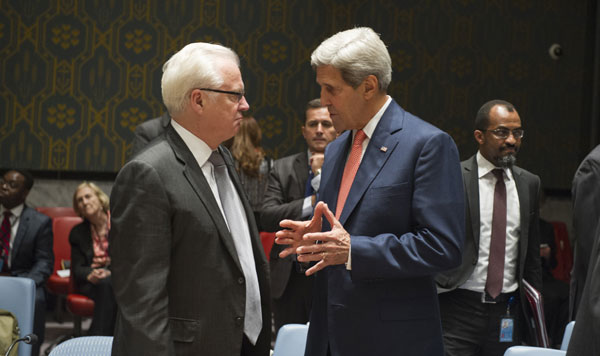 Виталий Чуркин и Джон Керри. Фото: unmultimedia.org Тем не менее, отмечают СМИ, необходимость формирования единого фронта борьбы с ИГ очевидна: за считанные месяцы исламисты взяли под свой контроль значительную часть территории Ирака и Сирии, и, хотя иракским военным удалось перейти в контрнаступление, о скорой победе речи пока не идет.
