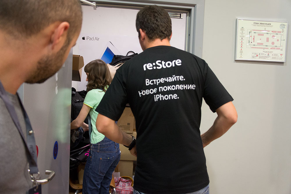 Около часа до старта, сотрудники re:Store уже готовы. Внутри пресса