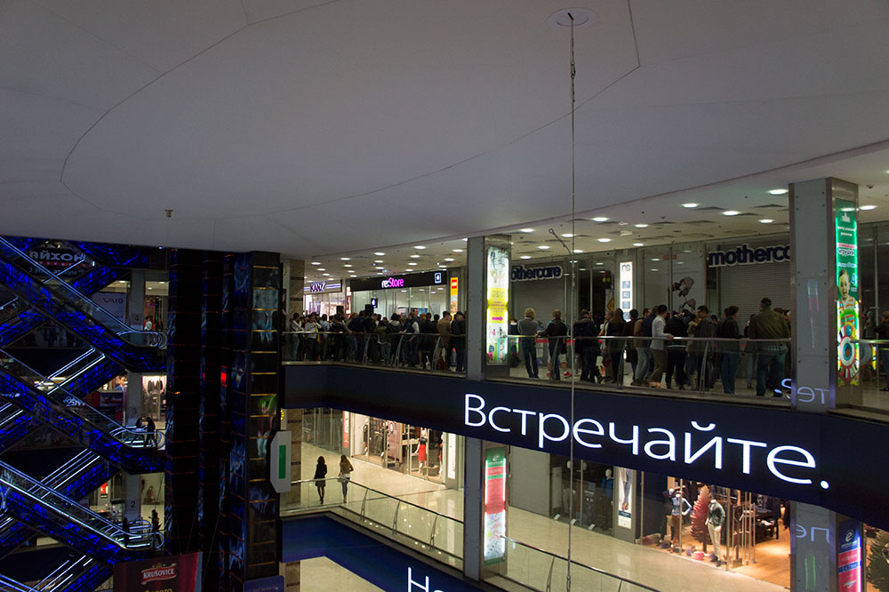 26 сентября ровно в полночь начались продажи iPhone 6 и iPhone 6 Plus в России. TJournal побывал на мероприятии в Москве, организованном магазином re:Store в торговом центре «Европейский».