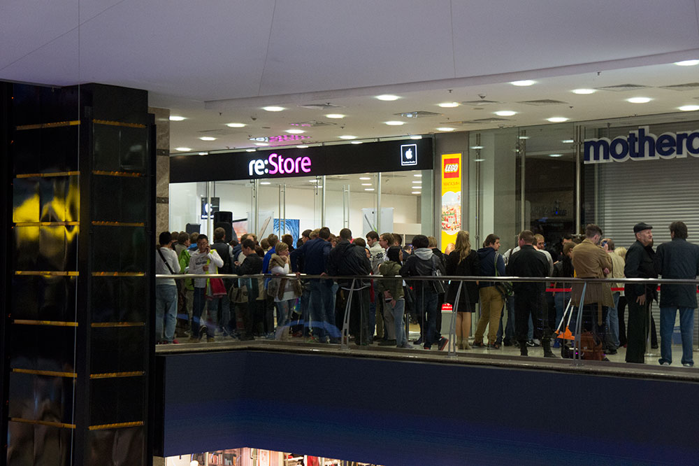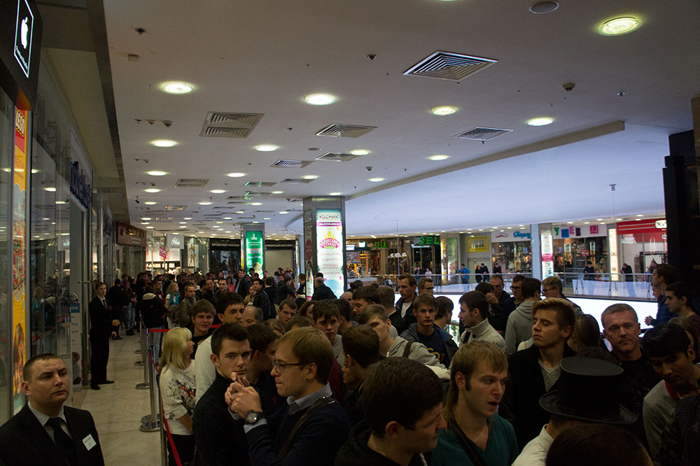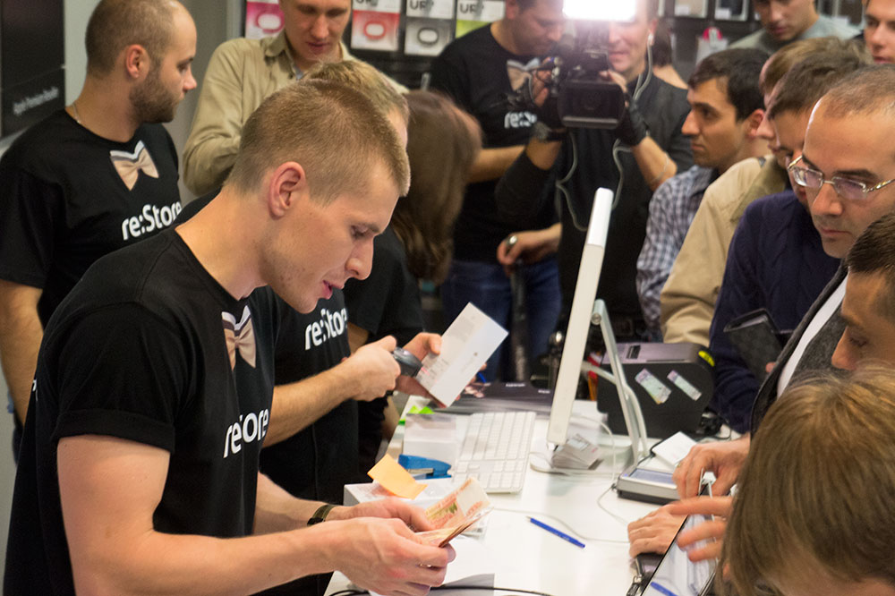 Несмотря на то, что первые айфоны перекупщики завезли в Россию прямыми рейсами из Гонконга ещё 19 сентября спустя пару часов после начала мировых продаж, аналогичное событие в Москве всё равно вызвало традиционный ажиотаж. Опустевший к вечеру 25 сентября «Европейский», один из крупнейших торговых центров столицы, казалось, сконцентрировал всех своих посетителей на небольшой площадке у магазина re:Store.
