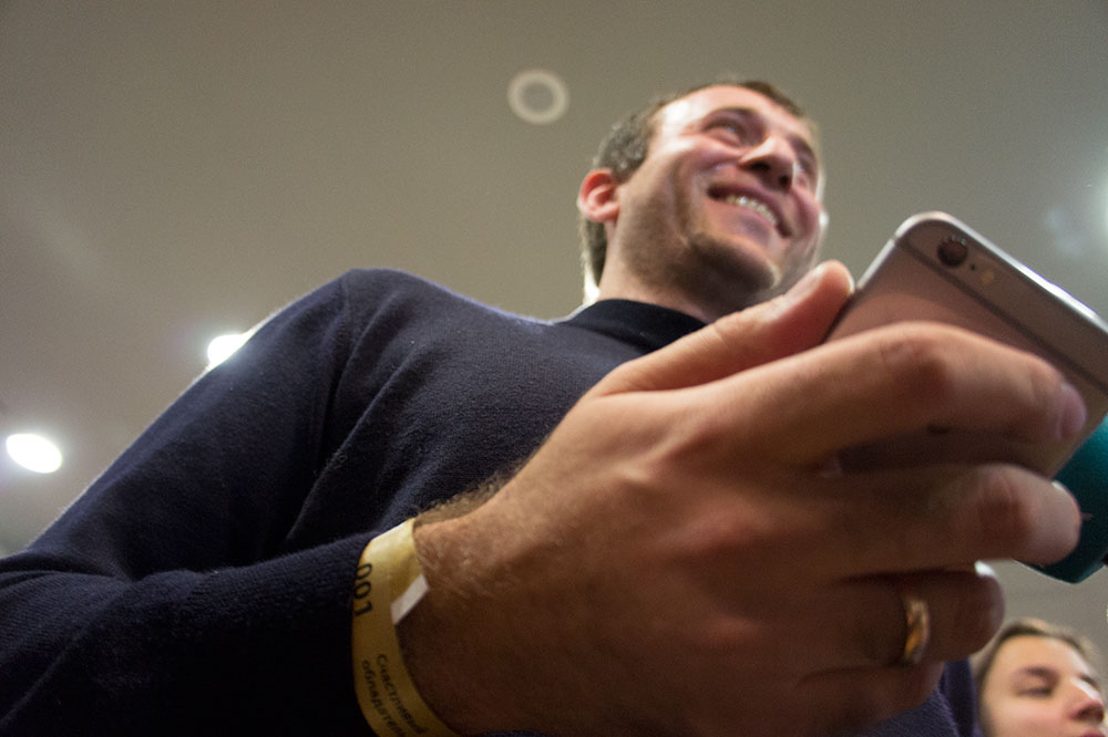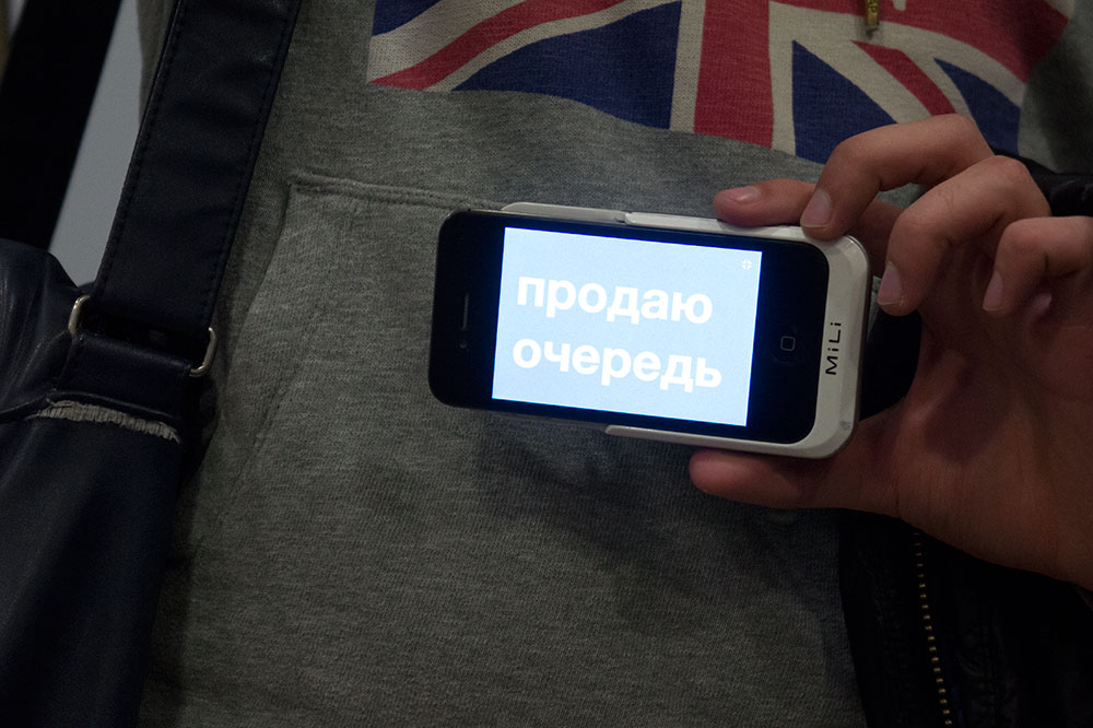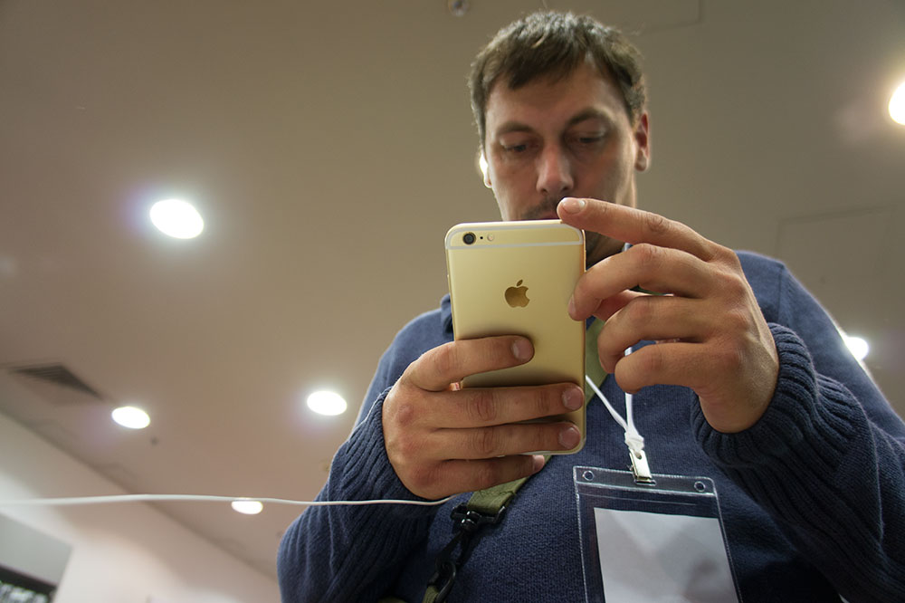 Первым покупателем стал мужчина по имени Сергей Халатян. Он сообщил TJournal, что купил два айфона — для себя и для жены. Сергей не рассказал, где работает, но заявил, что не в России. На вопрос, почему он покупает iPhone 6 в Москве, он ответил: «Так надо».