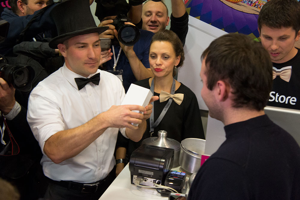 Естественно, реселлер был не единственным, кто устроил праздник из начала продаж iPhone 6. Похожие мероприятия синхронно проводились во флагманских салонах «МегаФона» и «Связного», однако не получили такого медийного охвата. Причина проста: re:Store построил очередь из сотен человек ещё утром четверга, начав выдачу браслетов, гарантировавших возможность приобрести смартфон после полуночи.