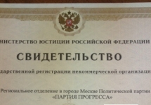 Партия прогресса зарегистрировала необходимое число региональных отделений