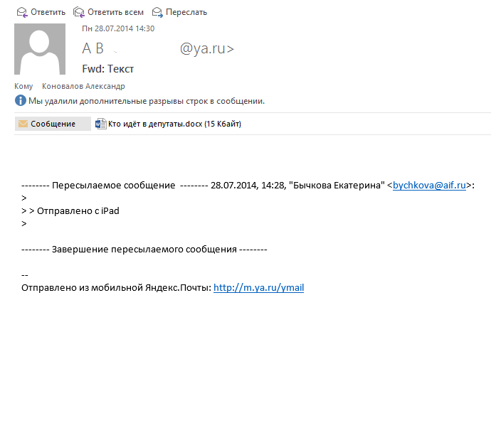 «Известия « не просто упоминаются в общей смете. В переписке также имеется письмо выпускающего менеджера «Известий» Юлии Малевановой